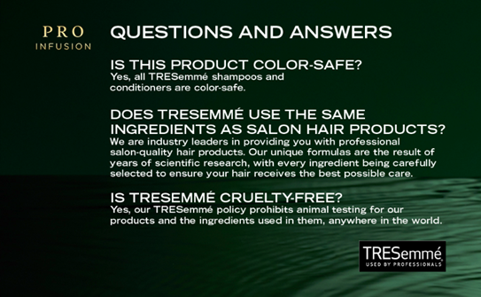 Inspired by salon protein waters for high shine and exceptional fluidity, this smoothing silicone-free conditioner for hair helps you achieve silky smooth hair with natural fluidity and shine. Infused with Niacinamide and powered by COCO-PROTEINIZE complex with natural coconut droplets to hydrate each strand, and plant-based salon protein to dive deep into the hair fibers, this hair conditioner provides smooth, detangled, high-shine hair. How to use: Prep your hair with our Pro-Infusion Fluid Smooth Shampoo and Conditioner. Apply TRESemmé Pro-Infusion Fluid Smooth Shampoo to wet hair, gently massaging your scalp and roots with fingertips to work into a lather. Lightly squeeze the shampoo from roots to ends and rinse thoroughly. Finish with TRESemmé Pro-Infusion Fluid Smooth Conditioner and for an extra boost, prep hair with the TRESemmé Pro-Infusion Fluid Smooth Tonic Spray to start your style. Every choice we make at TRESemmé, from the values we promote—such as not testing on animals and being PETA-approved—to the carefully selected ingredients we use, are made to give you professional salon quality haircare products you can trust. Because 70 years on, we believe in the power of style. So tell your story, make your mark – and achieve your aspirations with confidence.
