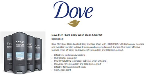 • Dove Men+Care Clean Comfort Body Wash is developed specifically for men's skin