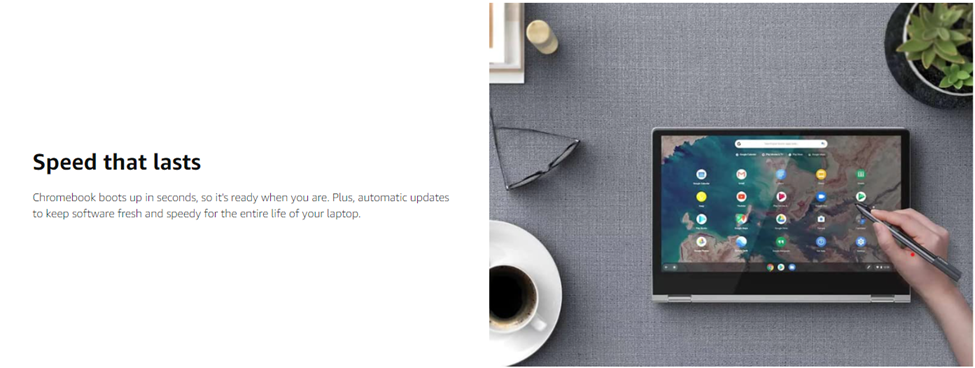 - With the streamlined Chrome OS packed with the latest features, this convertible Chromebook offers a quick and nimble system response time