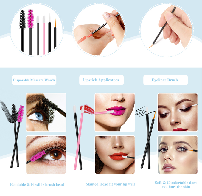 • 【Disposable】Disposable makeup accessories kit is suitable for personal daily makeup and makeup artist use, clean and hygienic, and can also prevent color mixing. It is also very suitable when trying on lipstick and mascara.