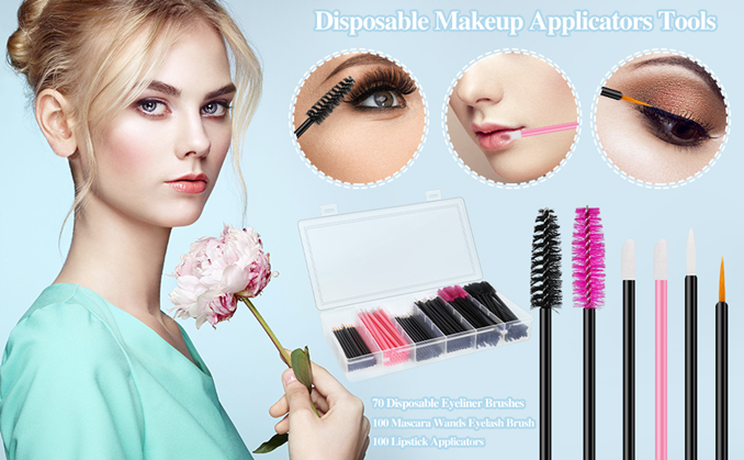 270 PCS Disposable Makeup Applicators Tools Kit 70 Disposable Eyeliner Brushes 100 Mascara Wands Eyelash Brush 100 Lipstick Applicators with Organizer Box for Mother's Day Gifts
