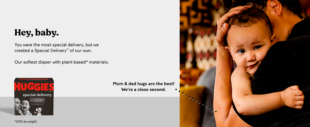 Deliver premium quality to your baby with Huggies Special Delivery Baby Diapers. Special Delivery Baby Diapers are our Softest Diapers Guaranteed*, love it or we'll refund it 100%! Dermatologist-tested and clinically proven to be hypoallergenic, these disposable baby diapers are made with plant-based materials** for trusted performance. Special Delivery offers Huggies Trusted Protection with responsibly-sourced materials.*** Not only are these super soft diapers safe for sensitive skin, but they also do not contain harsh ingredients and are free of fragrances, lotions, parabens, and elemental chlorine bleach. These baby diapers are crafted with a contoured shape, soft flexible leg cuffs and a back pocketed waistband to help prevent diaper blowouts and contain the mess. They absorb wetness and lock away moisture to keep your baby's skin clean and healthy, while a 100% breathable outer cover ensures airflow. Plus, with a wetness indicator, you'll always know when your little one is ready for a diaper change! For our perfect pair that's inspired your perfect care, try Huggies Natural Care Sensitive Baby Wipes. Huggies Special Delivery Diapers feature adorable 101 Dalmatians designs and are available in size Newborn (up to 10 lbs), size 1 (8-14 lbs), size 2 (12-18 lbs), size 3 (16-28 lbs), size 4 (22-37 lbs), size 5 (27+ lbs), and size 6 (35+ lbs). Don't get caught without Huggies diapers! Sign up for Subscribe & Save to ensure you always have Special Delivery on hand. Join Huggies Rewards+ powered by Fetch to get rewarded. Earn points on Huggies products redeemable for hundreds of gift cards. Download the Fetch Rewards app to get started today! (*Mail in within 30 days of purchase date. Online access required. Limit 1 per household. Original receipt/UPC required. Restrictions apply. See Huggies website for details and submission form. Expires 12/31/23.) (**20%+ by weight) (***Forest Stewardship Council certified pulp)