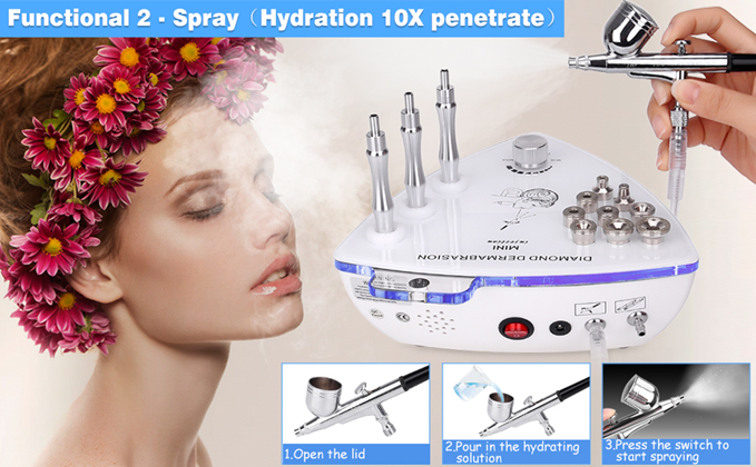 • ?【2 in 1 Beauty Machine - Microdermabrasion Dermabrasion Machine & Water Spray Exfoliation 】Smaller, smarter and cost effective Beauty device for at home skin care.After enjoying the deep cleansing, make the skin full of wate. Bring you, your family even and friends At-Home Beauty Salons. Best Gift for Yourself and Your Loved Ones