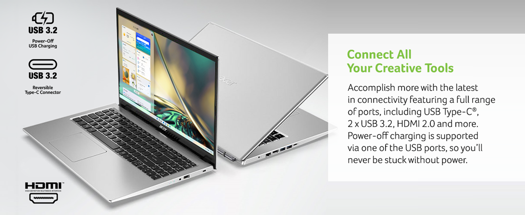 - What's In the Box: Acer Aspire Laptop, AC Adapter, Power Cord