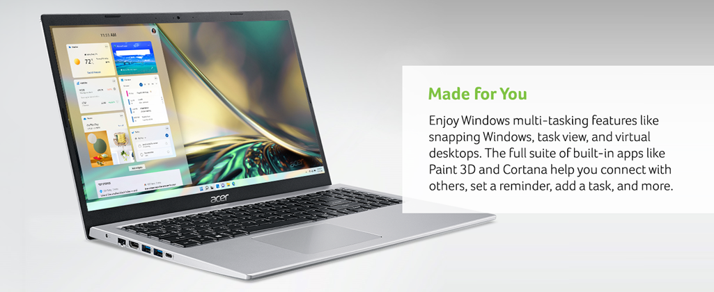 It's all about the innovation. Acer products are designed for your needs and accessibility with powerful features fit for your lifestyle. The Aspire 5 packs a lot of power into the portable design to suit the multi-tasking needs of you and your family. The powerful 11th Gen Intel Core i3 processor is great for light gaming, productivity, and work tasks. Enjoy photo and video editing on the color-rich 15.6-inch Full HD display with Intel UHD Graphics. You can turn this Acer Aspire 5 into a virtual meeting room with an HD webcam and dual built-in microphones using Acer Purified.Voice Technology to carry your conversation clearly. Whether video chatting, streaming entertainment, or working in the home office, you'll stay connected to your network with dual-band Wi-Fi 6 working intelligently with your router to increase network efficiency. An ergonomic lifted keyboard makes working on this Acer Aspire 5 laptop more comfortable. (NX.AASAA.002).