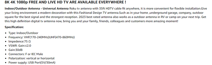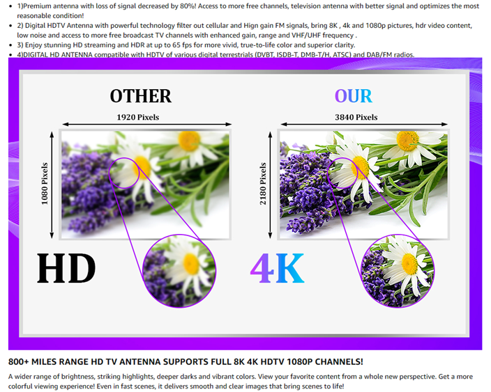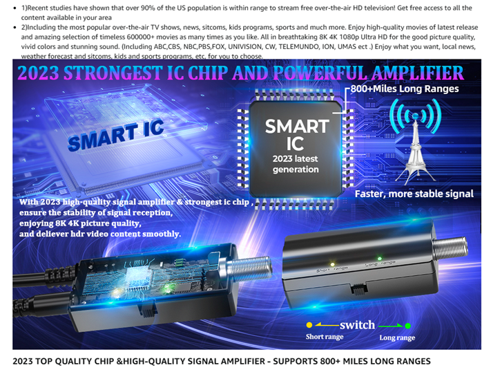 - ?▷【UPGRADED TO 800+ MILE LONG RANGE】- TV antenna for smart tv, equip with 2023 MOST POWERFUL built-in ic chip & HIGH-QUALITY signal amplifier, ensure the stability of signal reception,access to more free channels . Indoor/Outdoor tv antenna has high gain, bring clear pictures, low noise and access to most TV signals.Transfer 8k 4k combination of UHR and HDR video content. You deserved the 2023 Best & Oversized ANTENNA which offers more longer ranges on the market and lndustry-leading Power!
