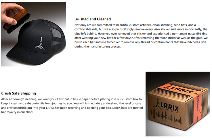 At Larix Gear we are serious about embroidery. Every Larix hat is embroidered right here at our shop in Columbia Falls Montana by us. It's our highest priority to achieve outstanding results by using the most advanced sewing technology and techniques available today. We have chosen Pacific Headwear 104c Richardson 112 and Yupoong 6606 models as our base trucker hats for the Larix designs. We believe these hats represent the best snapback mesh back adjustable retro trucker hats available anywhere. They are very similar to each other in quality fit shape and size. By using these models we can offer a better range of color options and in-stock availability. Not only are we committed to beautiful artwork clean stitching and crisp hats but we also painstakingly remove every visor sticker and more importantly the glue left behind. After removing the visor sticker as well as the glue we brush each hat and use forced air to remove any thread or contaminants that have hitched a ride during the manufacturing process. Then we wrap your Larix hat in tissue paper before placing it in our custom box to keep it clean and safe during its long journey to you. You will immediately understand the level of care and craftsmanship put into your Larix hat upon receiving and opening your box.