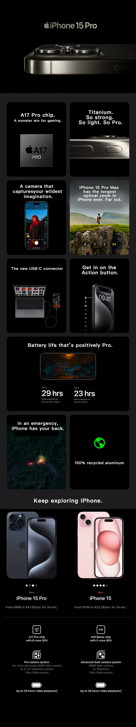 Apple iPhone 15 Pro (A3104) 128GB 256GB 512GB