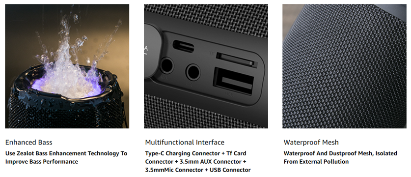 • Finally:ZEALOT has been dedicated to sound quality R&D and Bluetooth speakers for over 13 years. ZEALOT will be happy to talk to you and hear from you, getting back to you within 24 hours if you have any problems or good ideas