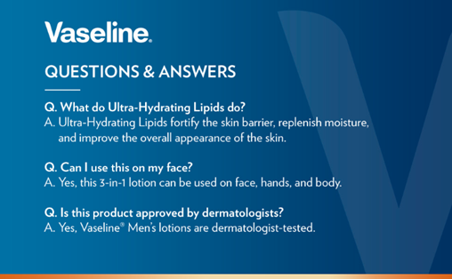 • HEALS DRY SKIN FAST: Vaseline Men Healing Moisture Hand & Body Lotion has been specially formulated to hydrate and restore dry or cracked skin