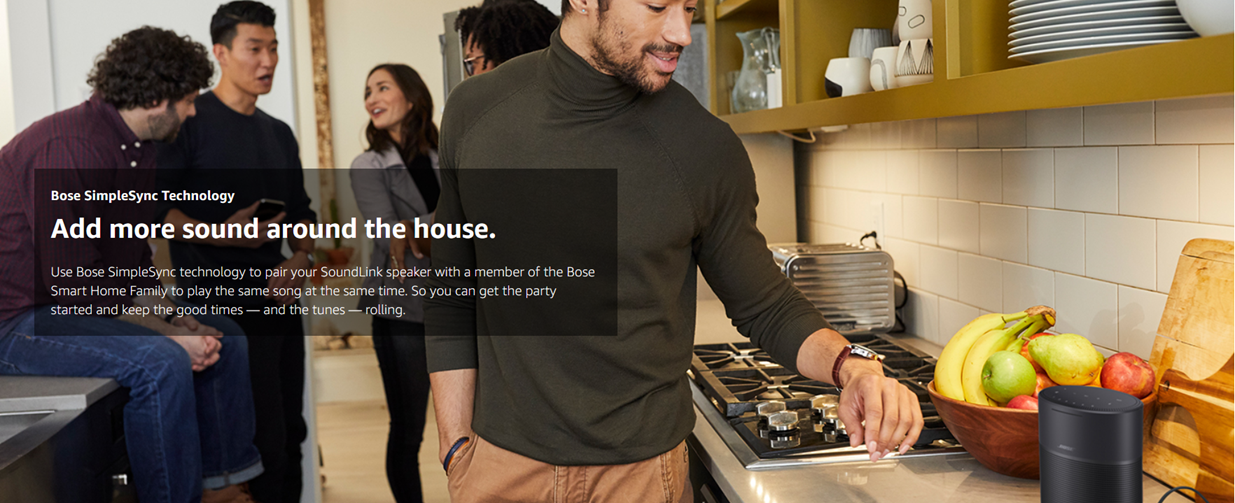 • BOSE SIMPLESYNC TECHNOLOGY: SimpleSync pairs your Bose SoundLink Revolve+ II Bluetooth Speaker to compatible Bose products for sound that follows you from room to room. Away from your phone? Press and hold the Bluetooth button on each device to sync their sound. Already got a group going? Link by pressing the Action button to connect at a moment’s notice