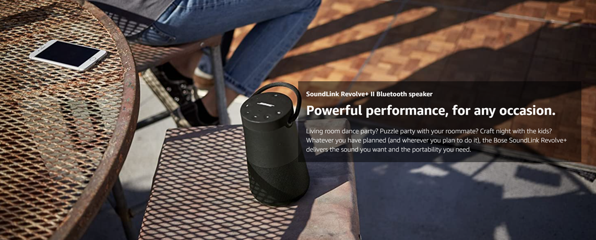 • MORE SOUND ALL AROUND: Engineered to deliver true 360° sound for consistent, uniform coverage from a bluetooth speaker. SoundLink Revolve-plus II plays louder and deeper with longer battery life than SoundLink Revolve II