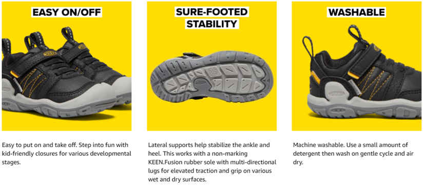 • TOE PROTECTION: A notched rubber toe bumper helps protect kids’ feet from the slips and stumbles that come with open play