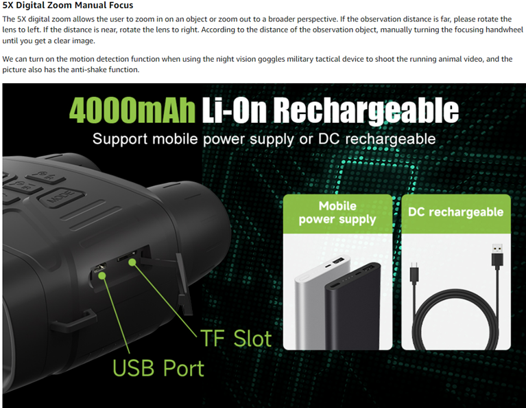 Included Components | Night Vision Goggles, 32GB SD Card, Data Cable, Neck Strap, User Manual |