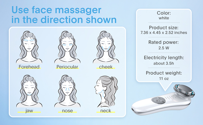 • 【Nutrition Introduction & Constant Temperature 45℃】The facial massager can effectively introduce the nutrients in skin care products into the skin, promote absorption at 45℃, and warm massage will bring a comfortable experience to the face.70