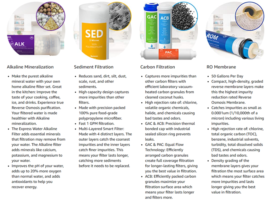 • Reverse Osmosis Replacement Water Filters: Experience what water should taste like with the Express Water reverse osmosis water filtration system removing up to 99.99% of impurities.