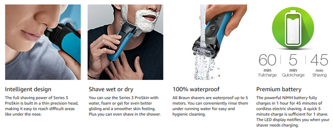 • WHATS IN THE BOX: Braun Series 3 electric razor, protective cap, smart plug for automatic 100-240 voltage adjustment